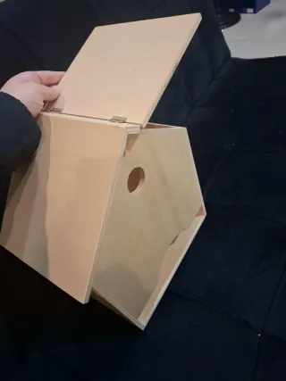 Pañalera en forma de casita de pájaros de madera sin usar, lista para decorar y colgar. - Material de madera. - Diseño de casa con tejado. - Agujero circular en el frontal.