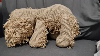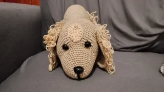 Adorable amigurumi hecho a mano con forma de perro. Perfecto como detalle decorativo o compañero. - Tejido a crochet. - Color beige. - Detalles de pelo rizado.