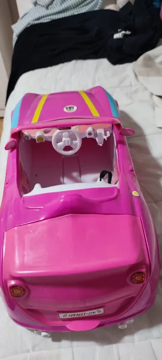 Coche descapotable de Nancy, ideal para jugar. - Color rosa y azul. - Diseño deportivo. - Adhesivo A day in California en el lateral. - Ruedas plateadas.