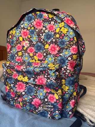 Esta como nueva, lleva a conjunto el neceser tambien nuevo. Tiene mucho espacio pero a la vez el tamaño de una mochila normal. Dentro lleva para sujetar cosas y que se queden pegadas a la espalda de la mochila. Tambien lleva sus cintas en la espalda para poder poner un carro.
