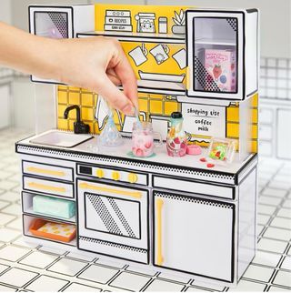 Set de cocina de MOA's Mini Verse con varios accesorios para crear tus propias miniaturas. - Incluye dos recetas. - Viene con mini manoplas de cocina. - Contiene elementos para decorar y glasear.