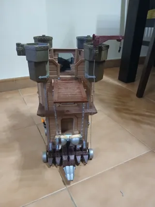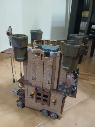 Gran lote de figuras y accesorios de Playmobil, ideal para recrear emocionantes aventuras. - no se vende por separado - empalisada con ruedas - castillo y pirata - Barril. - Figura de pantera negra. - Cañón. - Palmeras y vegetación. - Otros accesorios temáticos.