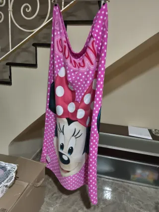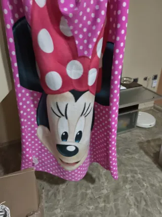Manta suave con estampado de Minnie Mouse. - Diseño en color rosa con lunares blancos. - Imagen grande de Minnie Mouse en el centro. - Borde con lunares.