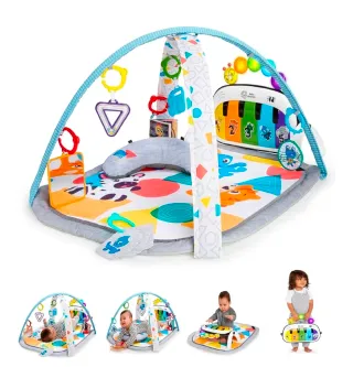 Parque infantil con arco de juegos y piano. - Incluye piano musical con luces y sonidos. - Varios juguetes colgantes para estimular al bebé. - Cojín de apoyo para los más pequeños. - Alfombra de actividades con diseño colorido.