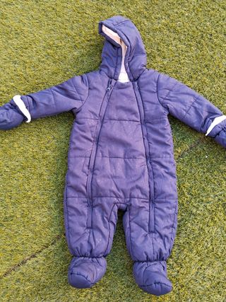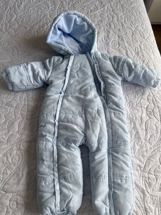 Buzo de bebé de color azul, ideal para mantener abrigado al pequeño. Talla 6-12 meses marca Dulces de El Corte Inglés. Muy cómodo de poner pues se abre con cremallera desde el cuello hasta el pie. Tiene patucos y manoplas que se enganchan con un automático para que no se pierdan. Ojo!! Lo dejo tan barato porque un patuco tiene una mancha de estar guardado ( no sé si se quitará) Última foto