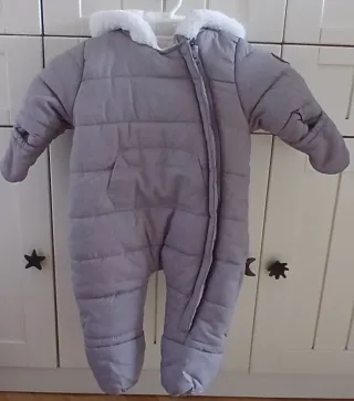 Este adorable buzo de bebé es perfecto para mantener a tu pequeño abrigado y cómodo. Su diseño divertido lo hace ideal para cualquier ocasión. Solo ha sido usado una puesta. - Color gris suave. - Detalle de elefante bordado en el pecho. - Capucha con orejitas. - Puños y pies integrados.