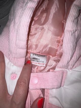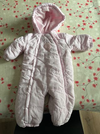 Precioso buzo acolchado en color rosa para bebé. - Talla 3 meses. - Diseño acolchado con rombos. - Incluye capucha y manoplas. - Cierre de botones a presión.