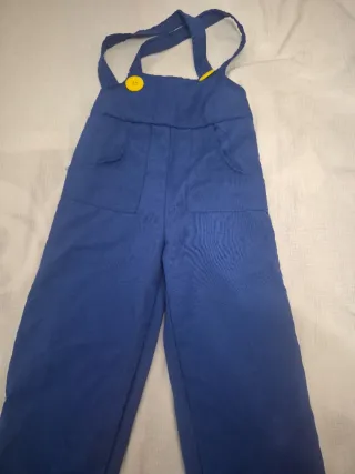 Buzo azul inspirado en Mario Bros, ideal para disfraces o uso diario. - Color azul vibrante. - Detalle de botones amarillos. - Tirantes ajustables. - Bolsillos frontales.