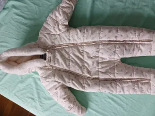 Precioso buzo o mono acolchado para bebé, ideal para mantenerlos abrigados. - Color agua marina y otro rosa palo con etiqueta (nuevo) - Capucha con pelo sintético. - Incluye manoplas y patucos. - Cierre frontal.