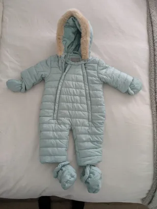 Buzo acolchado para bebé, ideal para los meses más fríos. Con capucha y manoplas.Marca coconut del corte inglés. Usado una vez - Color azul claro. - Talla 3-6 meses. - Cierre de cremallera frontal. - Forro interior suave. - Detalle de pelo en la capucha.