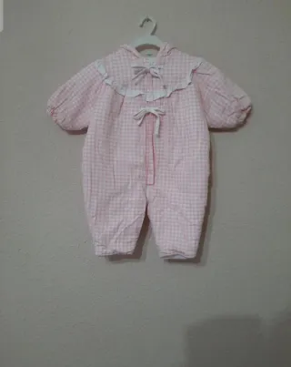 Precioso buzo para bebé con estampado de cuadros. - Color rosa y blanco. - Cuello con volante. - Lazos decorativos.