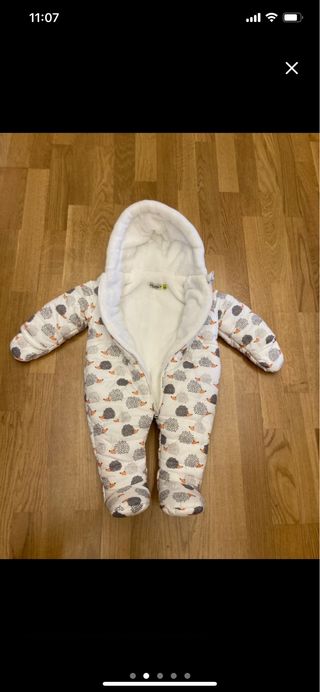 Mono de bebé con estampado de erizos. Ideal para los meses de frío. - Talla 3-6 meses. - Diseño acolchado. - Capucha forrada. -Muy calentito y suave -Unisex, tanto para niño como para niña