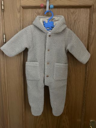 Buzo de Zara de borreguillo, perfecto para mantener abrigado a tu bebé. - Material exterior: borreguillo. - Forro interior polar. - Talla: 6-9 meses.