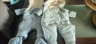 Conjunto de abrigo para bebé, ideal para los días fríos. - Color azul marino. - Capucha con forro interior. - Cierre de cremallera. Usado poco. Ya q mi bebe nació en abril, y por el tiempo no lo uso mucho.