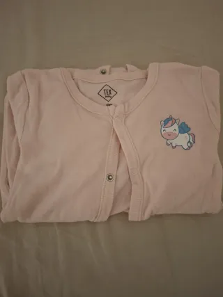 Precioso pijama buzo de manga larga para bebé. - Talla 12-18 meses. - Color rosa pálido. - Estampado de unicornio. - Cierre de botones a presión.