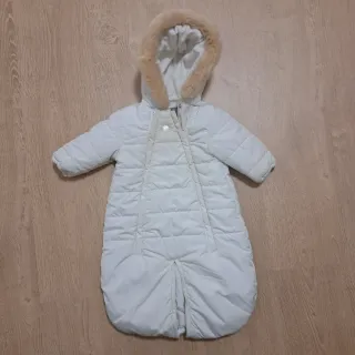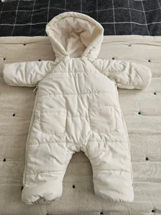 Buzo de bebé acolchado en color crema, ideal para mantener a los más pequeños abrigados. Talla 1-3 meses de coconut. Apertura total con cremalleras, muy fácil de poner. Los pies y las manoplas se quitan y ponen. Usado dos veces - Diseño con capucha. - Cierre de cremallera. - Dos bolsillos delanteros. - Material suave y confortable.