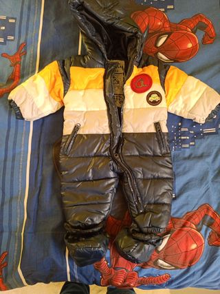 Buzo de invierno muy calentito. Tiene una cremallera doble para facilitar la puesta. Manoplas y patucos desmontables. Sin estrenar (cuando llegó el frio ya no le valía al niño y no pudimos cambiarlo). Precio en El Corte Inglés 89€