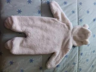 Abrigo de invierno para bebé con diseño de oso. - Material de peluche muy suave. - Talla 3 meses - Capucha con orejitas. - Cierre de cremallera frontal. - Pies incorporados.