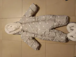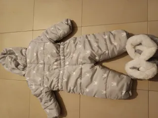 ✨ Muy buena calidad, tejido suave y cómodo. 👌 En muy buen estado, casi sin uso. 👕➡️ Más ropa de bebé en mi perfil Ideal para los días fríos. - Talla 4-6 meses. - Incluye manoplas y patucos. - Forro interior gris.