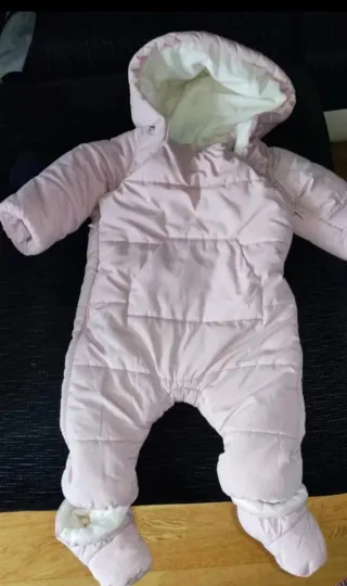 Buzo bebé, talla 1-3 meses marca Dulces. Muy Calentito, todo el interior forrado, incluye botas y manoplas, también forradas en el interior, con corchete para no caerlas y poderlas quitar si no las necesitas. Sin ninguna mancha ni enganchón. Perfecto para el invierno.
