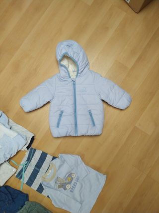 buzo benetton, abrigo y chaleco del corte ingles. todos de 6 a 12 meses dan, incluso hasta 14 meses. el buzo se ha usado 2 veces y fueron 70 euros.