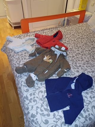 Pack de ropa de abrigo para bebe de 3 a 6 meses aproximadamente. El buzo lleva sus patucos y manoplas. La chaquetilla blanca es reversible y abriga bastante. El abriguito rojo es de benetton y está completamente nuevo. Y el azul es una chaquetilla para entretiempo. Están prácticamente nuevos. Venta en persona. Todos 15 euros.
