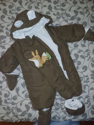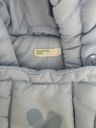 Buzo bebé benetton de 1/3 meses da más talla. Usado solo para montar al bebé en el coche y poderlo abrochar en un par de ocasiones. Calentito y gustoso. Fácil de poner y quitar. Va completamente abrigado con pies incluidos, no me gustan los q llevan el cubre pie aparte.
