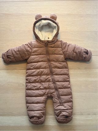 Abrigo buzo de invierno para bebé de H&M, talla 6 meses. Perfecto para los días fríos. - Diseño acolchado. - Capucha con orejitas. - Forro interior suave. - Cierre de cremallera.