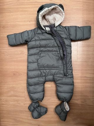 Buzo para bebé acolchado con interior en forro polar de Zara Kids. Color gris. Talla 6/9 meses