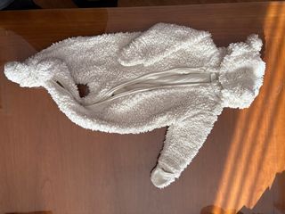 Prenda de abrigo para bebé, ideal para mantenerlo cálido. - Material polar suave y confortable. - Color blanco. - Cierre de cremallera frontal.
