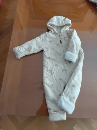 Vendo mono con forro calentito y suave para bebé de 3 meses 56-62cm. Color blanco de Kiabi