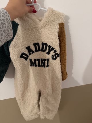 Adorable buzo de peluche para bebé con el divertido mensaje Daddy's Mini. Perfecto para mantener a tu pequeño abrigado y con estilo. - Material de peluche suave y cálido. - Diseño multicolor con mangas en contraste. - Capucha integrada para mayor comodidad.