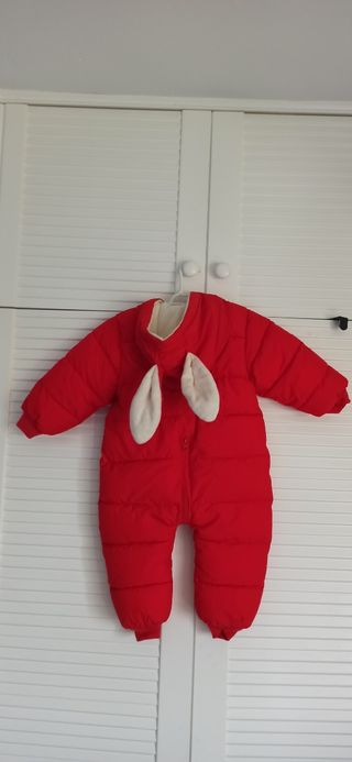 Buzo de bebé muy calentito, apenas se ha usado un par de veces. El interior es de tela polar y tiene protector en la cremallera para la barbilla, capucha con orejas y un pequeño bolsillo delantero. Talla 62 (1-3 meses). Más artículos de bebé en mi perfil :)