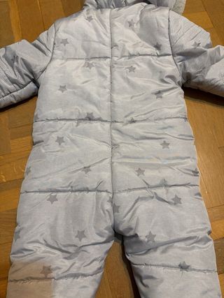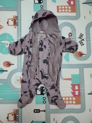 Buzo de bebe muy calentito con capucha de color gris-rosaceo. En perfecto estado, apenas se ha usado porque porteabamos y usabamos abrigo de porteo. - Marca: Next - Talla: 3-6 meses - Fácil de poner: doble cremallera en la parte delantera. - Tejido de cortavientos en el exterior y con forro en el interior. Ideal para invierno. Más ropa de bebé disponible en mi perfil. Se ofrecen descuentos por lotes. Por favor, si es posible solicitar Inpost como transportista.