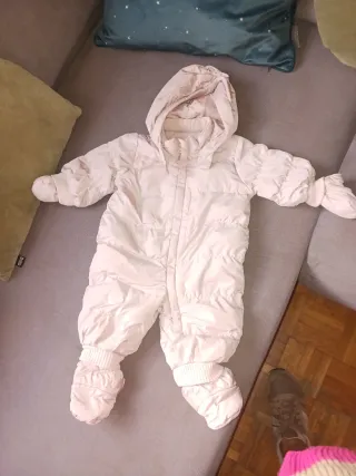 Buzo de bebé de la firma Coconut. Muy calentito. Solo ha tenido una puesta. Las manoplas y los peucos se pueden quitar. Color rosa muy clarito. Talla 3/6 meses