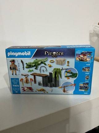 Set de Playmobil de la temática Piratas, modelo Starter Pack. - Incluye 59 piezas. - Recomendado para edades de 4 a 10 años. - Contiene advertencia de piezas pequeñas, no apto para menores de 3 años.
