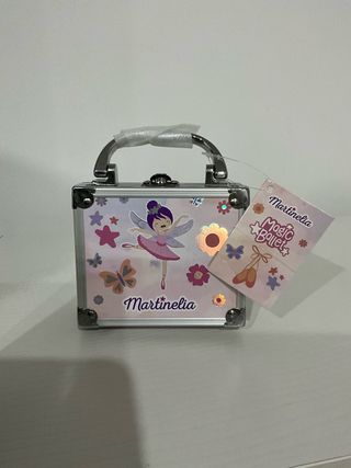 Precioso maletín de la marca Martinelia con temática de ballet. - Diseño con hada bailarina y mariposas. - Acabado metálico plateado. - Asa superior para fácil transporte.