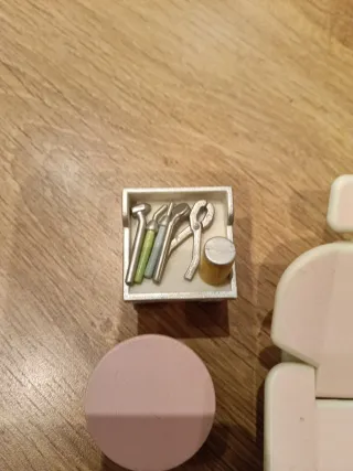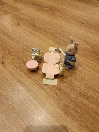Set de dentista de Sylvanian Families. - Incluye figura de conejo con uniforme. - Sillón dental. - Carrito con instrumental. - Taburete.