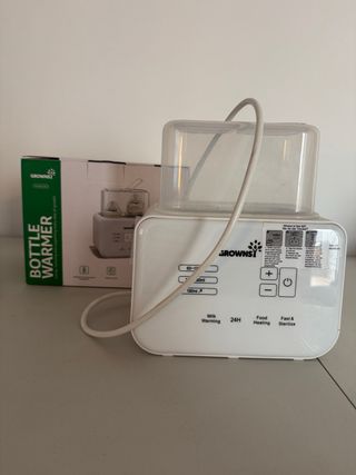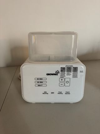 Calienta biberones y esterilizador de la marca GROWNSY. Ideal para mantener la leche o comida a la temperatura perfecta y esterilizar los biberones. - Funciones: Calentamiento de leche, calentamiento de comida, 24H, esterilización rápida. - Capacidad para biberones de 60-170ml y 180ml. - Incluye tapa protectora.