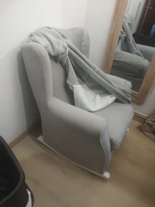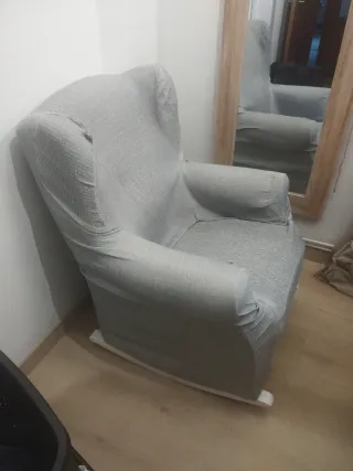 Sillón orejero ideal para lactancia, en tono gris. Su diseño envolvente ofrece comodidad. - Funda extraíble para facilitar su lavado. - Base balancín. - Reposabrazos acolchados.