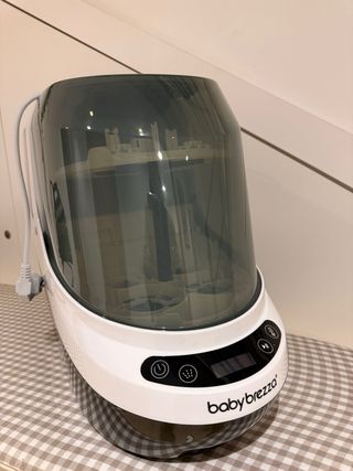 Esterilizador y lavadora automático Baby Brezza. Diseñado para facilitar la higiene de los artículos del bebé. - Color blanco y gris. - Tapa transparente. - Panel de control digital. Lava, esteriliza y seca biberones, tetinas y accesorios. En excelente estado, totalmente funcional y muy limpio.