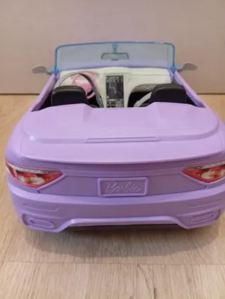 Coche descapotable de Barbie en color morado. - Diseño deportivo y elegante. - Parabrisas transparente. - Retrovisores plateados.