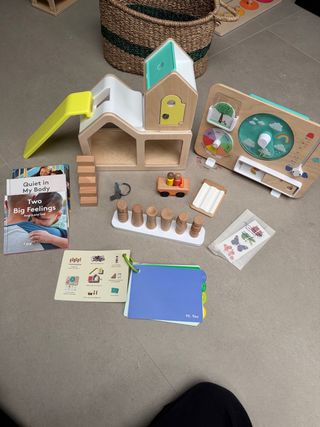 Vendo una guía de juego Free Spirit para niños, adecuada para niños de 34, 35 y 36 meses de edad. ✨ Estado: • El kit está completo y todos los juguetes están en excelente estado. • La única excepción es la base del rompecabezas, que se dejó accidentalmente en la terraza y se mojó ligeramente por la lluvia. Presenta una leve exposición al agua, pero no afecta su uso. En general, es un set muy bien cuidado, con mucha vida útil restante, ideal para que los pequeños aprendan y jueguen.