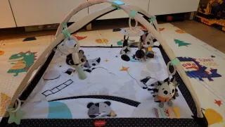Gimnasio de actividades para bebés de la marca Tiny Love. Diseñado con un estilo moderno en blanco y negro para estimular la visión los primeros meses. - Incluye arcos de juego con colgantes: sonajero, mordedor, espejo, movil, peluche con sonido... - Tapete acolchado con estampado. - Bloques de actividades sensoriales.