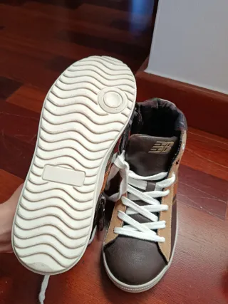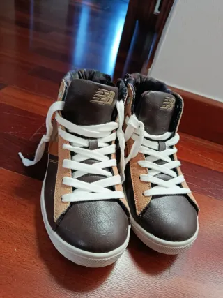 Zapatillas altas de niño. Combinan marrón y detalles en ante color caramelo. Talla 34 - Cierre con cordones blancos. - Detalle de logo en los laterales. - Interior con estampado de camuflaje.