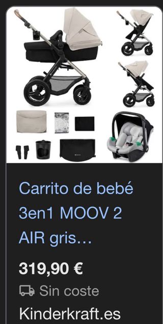 ✨ Vendo cochecito de bebé Kinderkraft – Completo y en excelente estado ✨ Cochecito Kinderkraft de segunda mano, muy bien cuidado y totalmente funcional. Ideal desde recién nacido, ya que es 3 en 1: capazo, silla de paseo y portabebé/grupo 0. Diseño moderno, cómodo y práctico tanto para la ciudad como para paseos largos. 🔹 Características destacadas: • Capazo amplio y cómodo • Silla de paseo reclinable • Portabebé incluido • Ruedas grandes con buena suspensión • Fácil de plegar y manejar • Gran cesta inferior para almacenamiento • Incluye accesorios