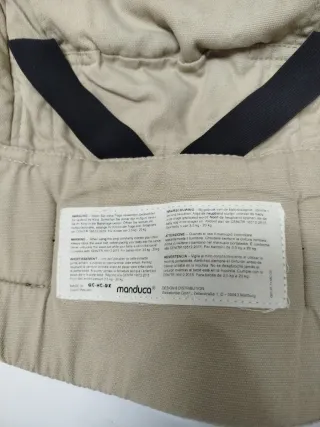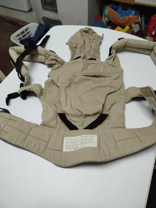Mochila ergonómica para llevar a tu bebé de forma cómoda y segura. Su diseño permite distribuir el peso de manera equilibrada. - Color beige. - Tirantes acolchados. - Capucha integrada.