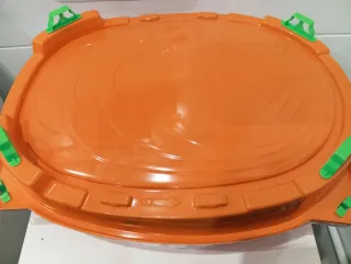 Pista de batalla Beyblade con dos Beyblades incluidos. Ideal para emocionantes combates. - Pista de color naranja con detalles verdes. - Incluye 2 Beyblades.