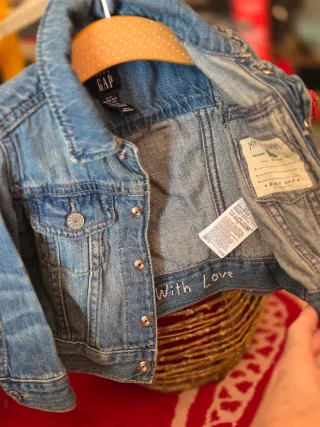 Chaqueta tejana de la marca Gap para bebé, talla 6-12 meses. Es una prenda clásica y versátil. - Diseño de denim. - Cierre de botones metálicos. - Bolsillos en el pecho.