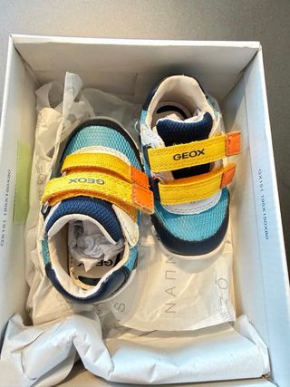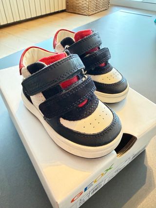 Zapatos para bebé de la marca Geox en talla 18. Perfectos para los primeros pasos. Las hemos usado muy poco y están en excelente estado. En mi opinión, son de los zapatos más cómodos para que los bebés aprendan a caminar.